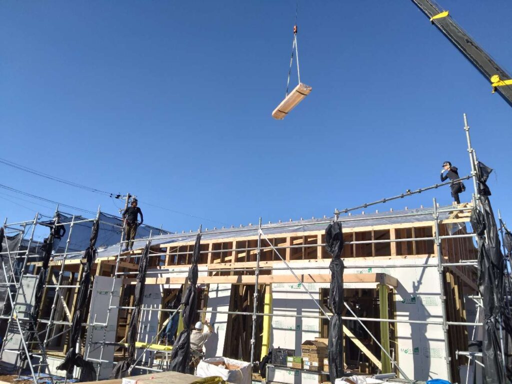 小春日和の澄みきった青空の中、上棟おめでとうございます!
