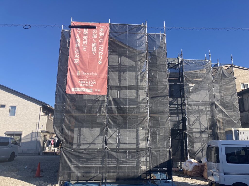 無事上棟が終わり、建物の雰囲気が感じて頂けるようになりました。