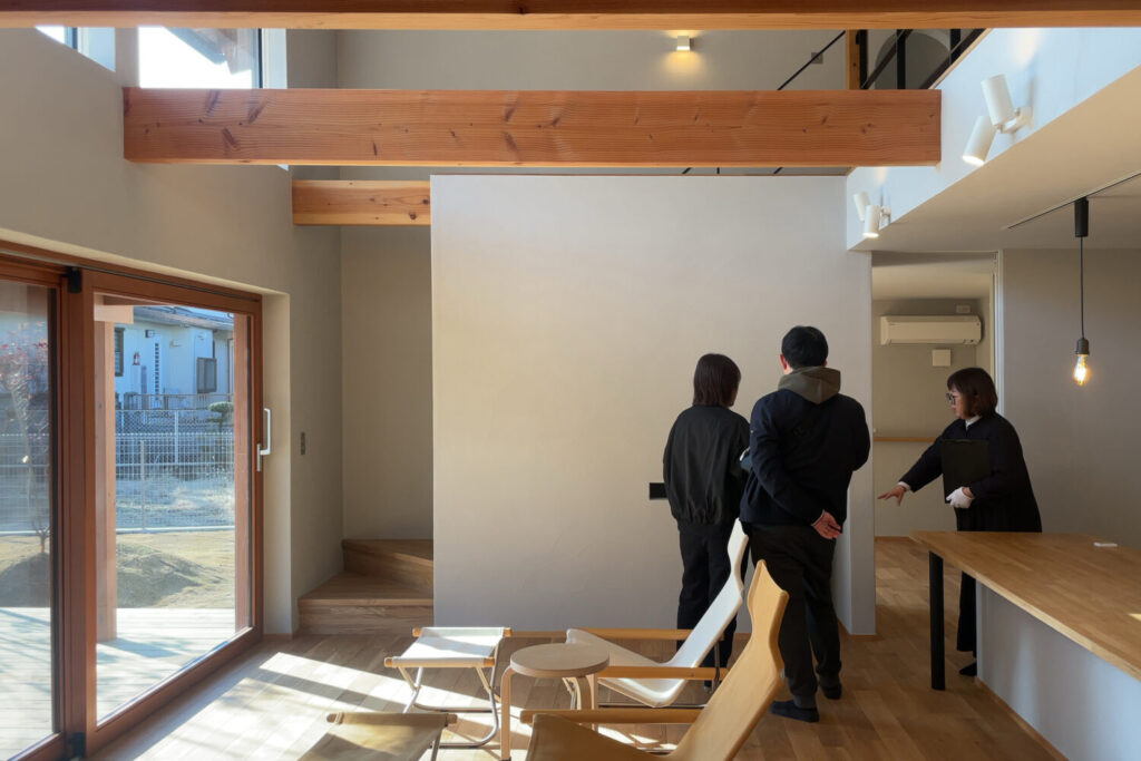 木を活かした空間づくりや、大きな木製サッシ、心地よい吹抜けなど、それぞれの視点でじっくりと住まいをご覧いただく姿がとても印象的でした。