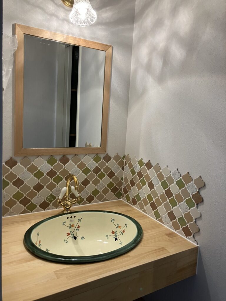 コラベルのタイルは、奥様が配色を考えられ、とてもいいバランスに仕上がりました。