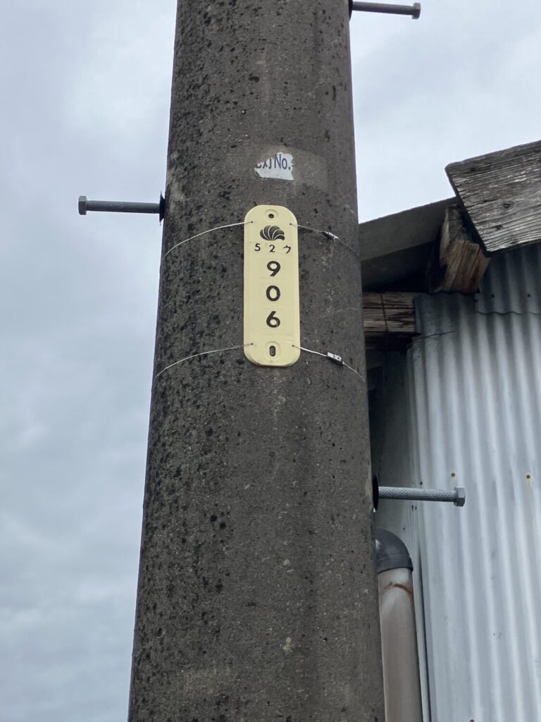 電柱には電柱番号があり、その番号により位置が特定できます。