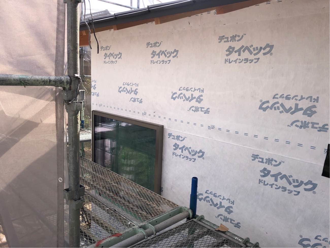 防水シート施工のみで防水が出来ており外壁材が無くても大丈夫な位の施工です