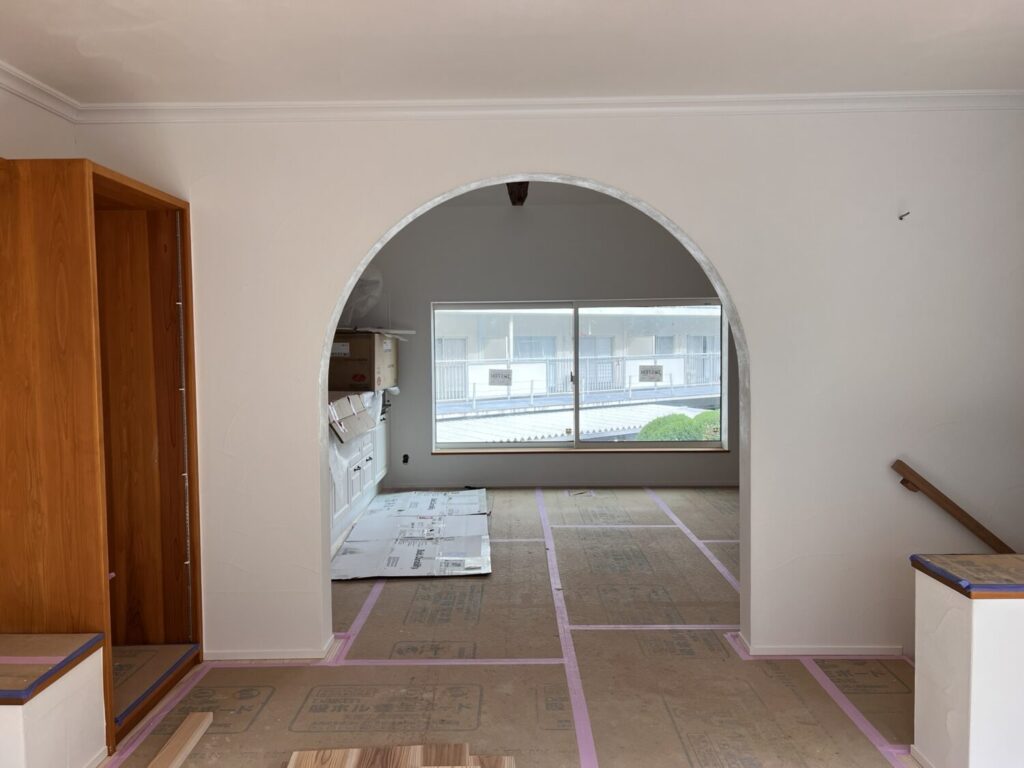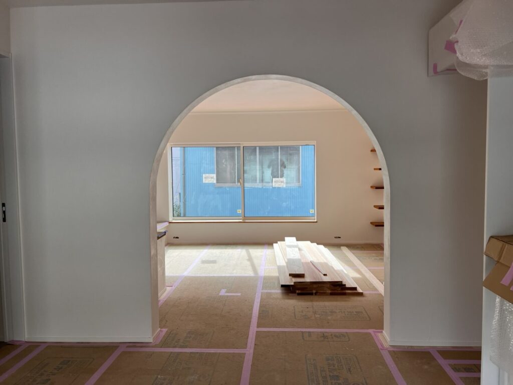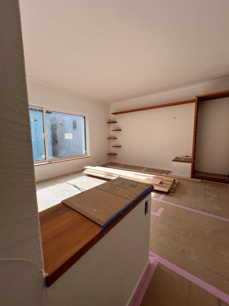 内装は杉材と塗り壁でまとめ、自然素材のやさしい表情が家全体を包み込みます。これから外構工事に入り、いよいよ完成が近づいてきました。新しい暮らしの中で、猫ちゃんがどこを一番のお気に入りにするのか楽しみです。