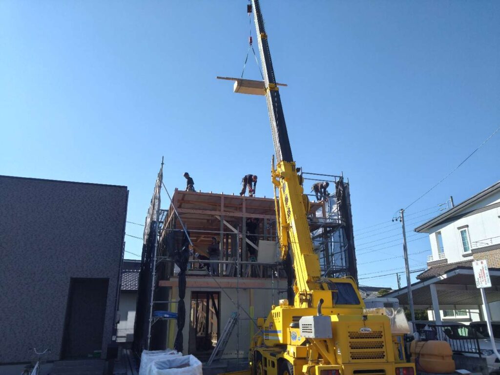 構造的に建物のゆがみを防ぎ、安心を支える大切な部材を取り付けし、その後の屋根までの上棟作業も完了しました。