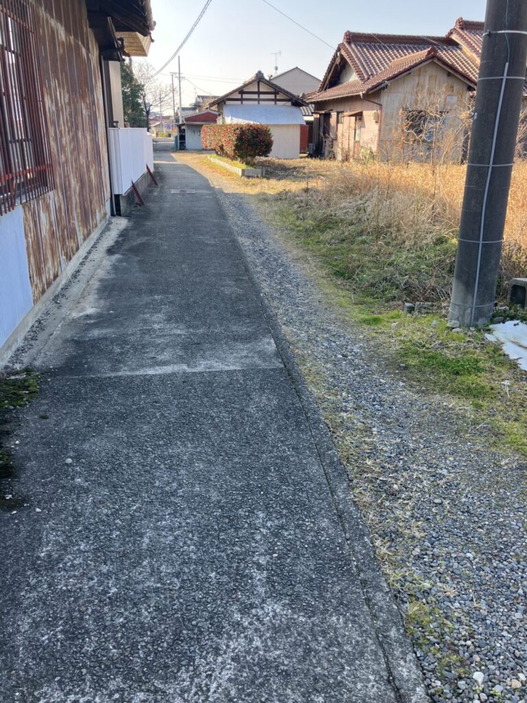 左側が建築地になるのですが、道路が突如としてアスファルトからコンクリートに変わります。
