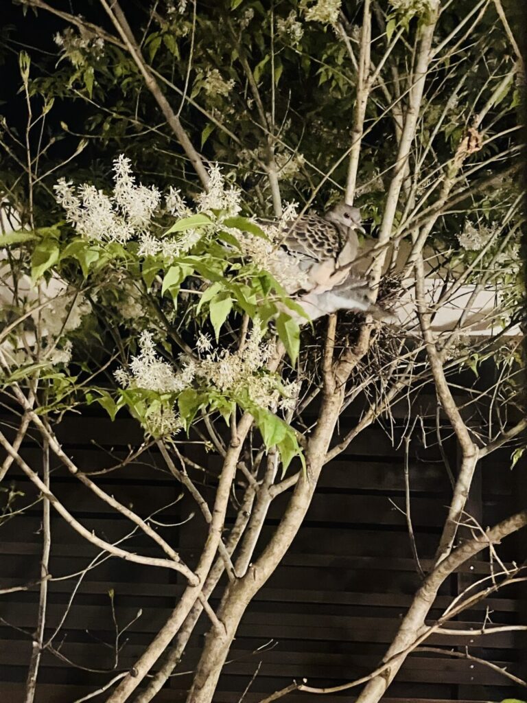 そして、中庭ではキジバトが無事に卵を産みました。