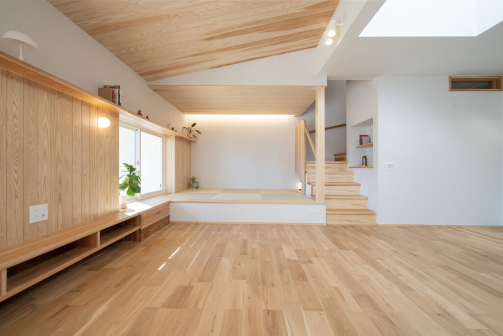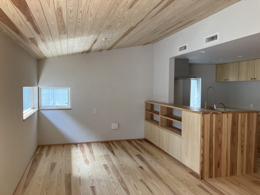 先月内覧会にお越しいただいたお客様の中に、「天井の仕上げに木を貼った感じを見たい」という方が何組かいらっしゃいましたので、ご紹介させていただきます。