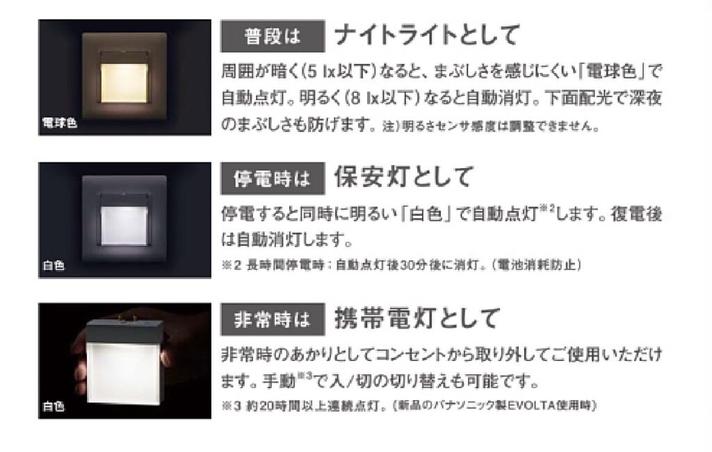なんと。停電時、自動点灯してくれる保安灯機能がついています。
