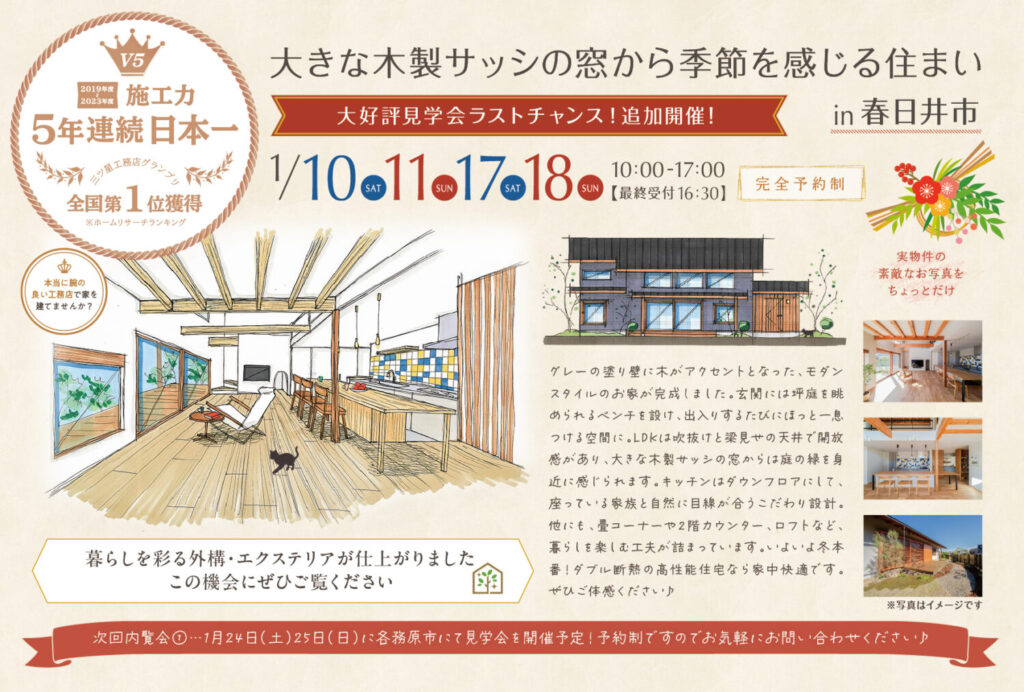 1/10(土)11(日)17(土)18(日) 大きな木製サッシの窓から季節を感じる住まい in 春日井市