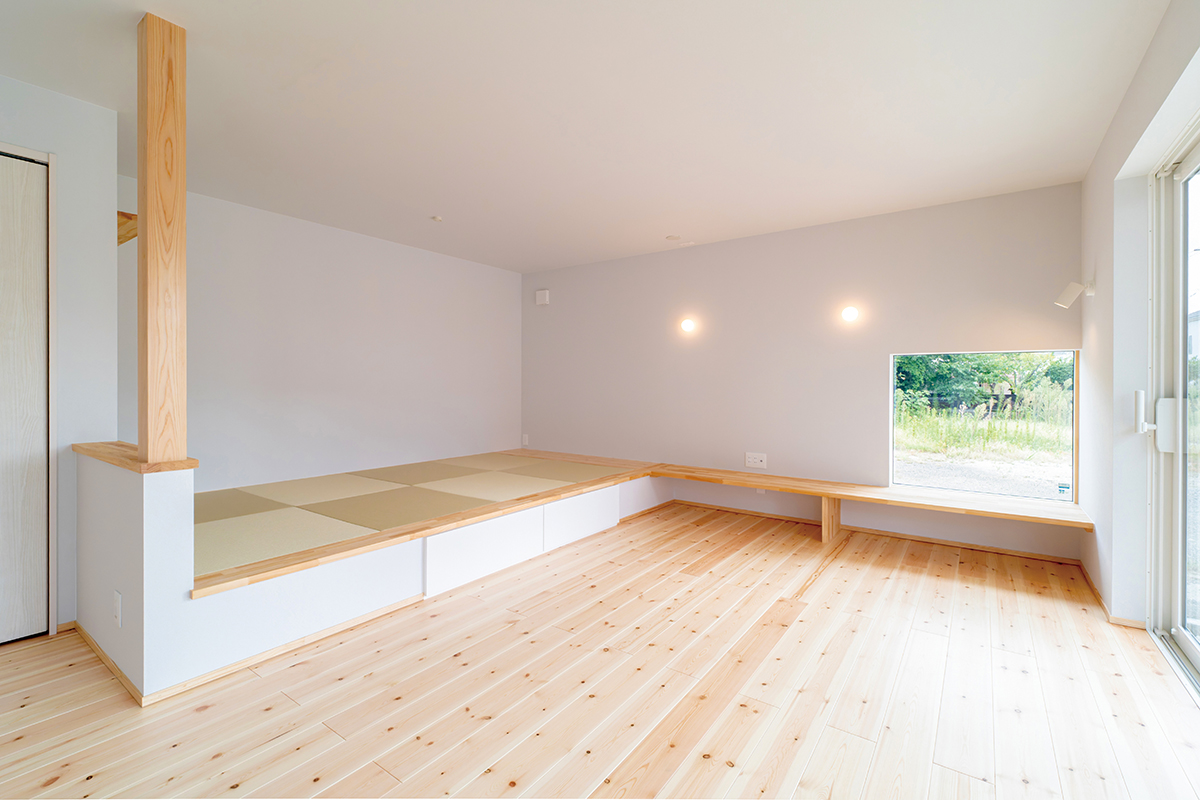 ・LDKに掃き出し窓が2ヶ所あり、庭とのつながりがある ・LDKとつながる小上がりの畳コーナー ・2階の1部屋から出入りできる屋根上デッキ ・2階に家族各々で使える部屋 ・一年中快適なダブル断熱の高性能住宅 【予約制】のためゆっくり見て・聞いて、家づくりのヒントが見つけられます!ぜひお越しください!