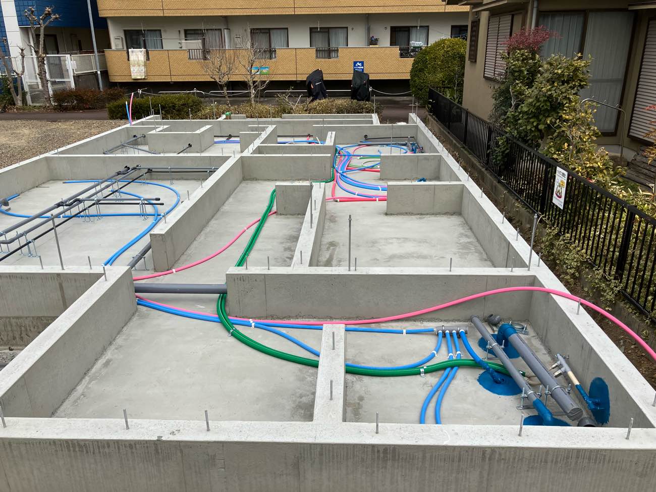 基礎が完成し、配管工事が行われました。
