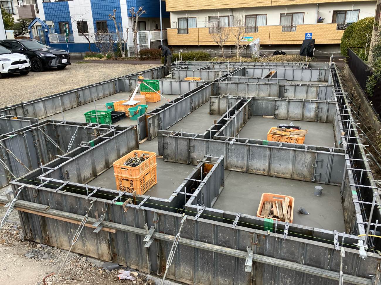 基礎が完成し、配管工事が行われました。