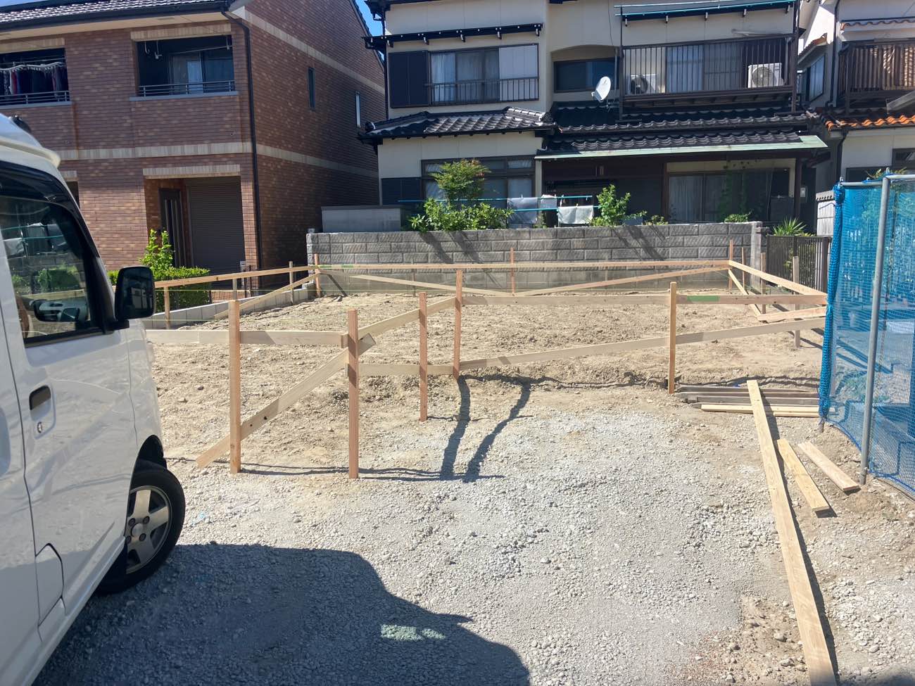 丁張を行い、建物の位置出しを行いました。