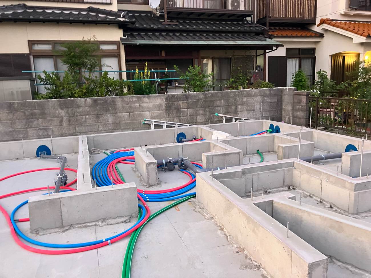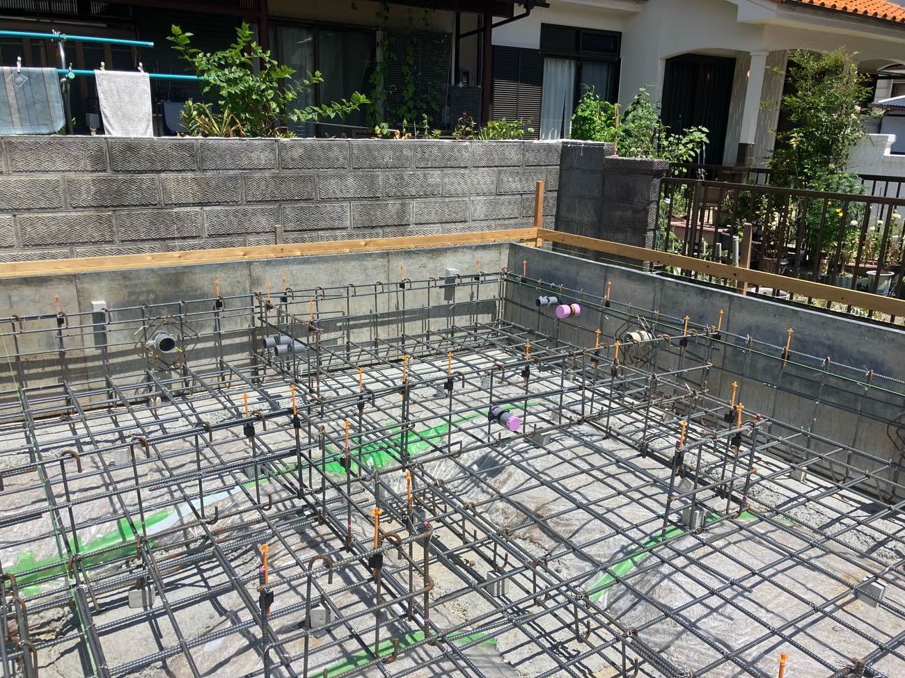 配筋状況を検査しています。 問題なし、ベースの打設に入ります。